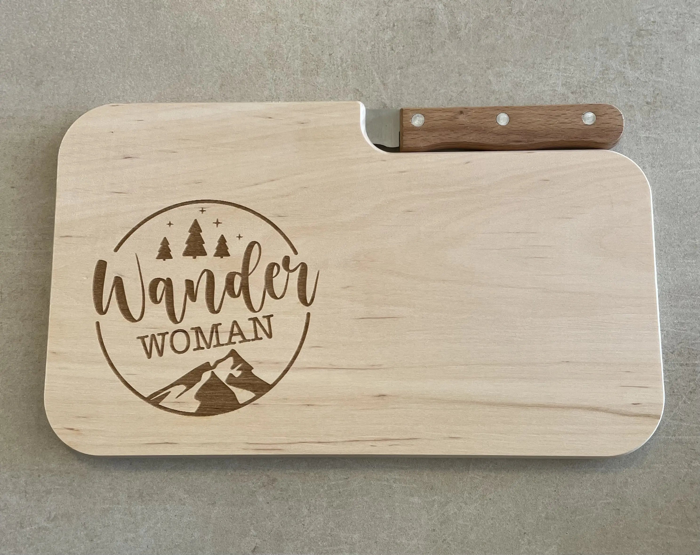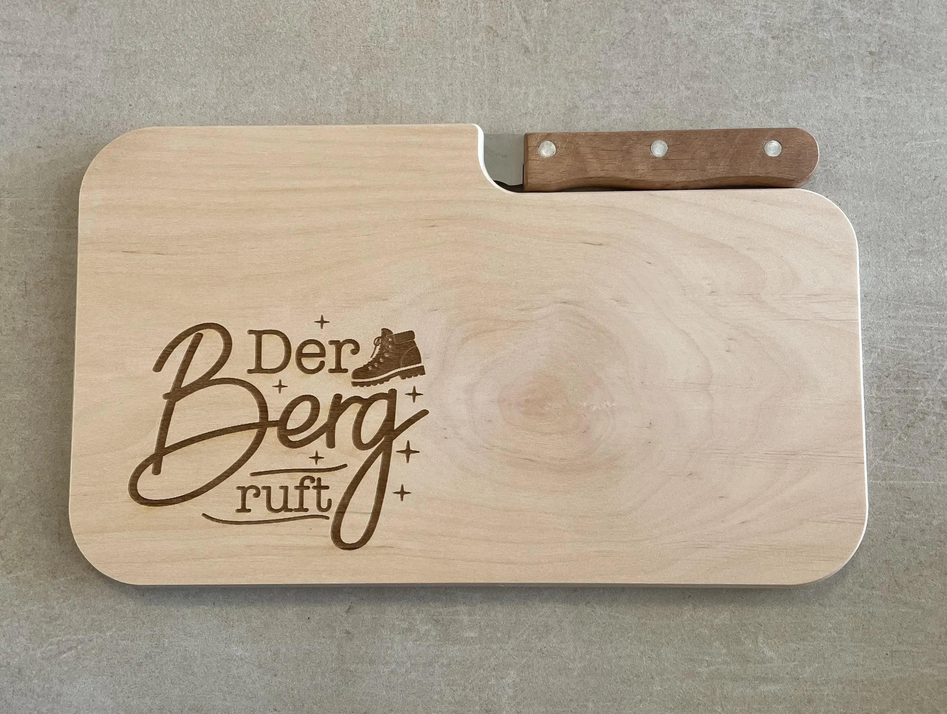 Du liebst die Berge, das Campen oder suchst ein persönliches Geschenk für einen besonderen Menschen? Dann ist dieses Jausenbrett mit integriertem Messer genau das Richtige für Dich!