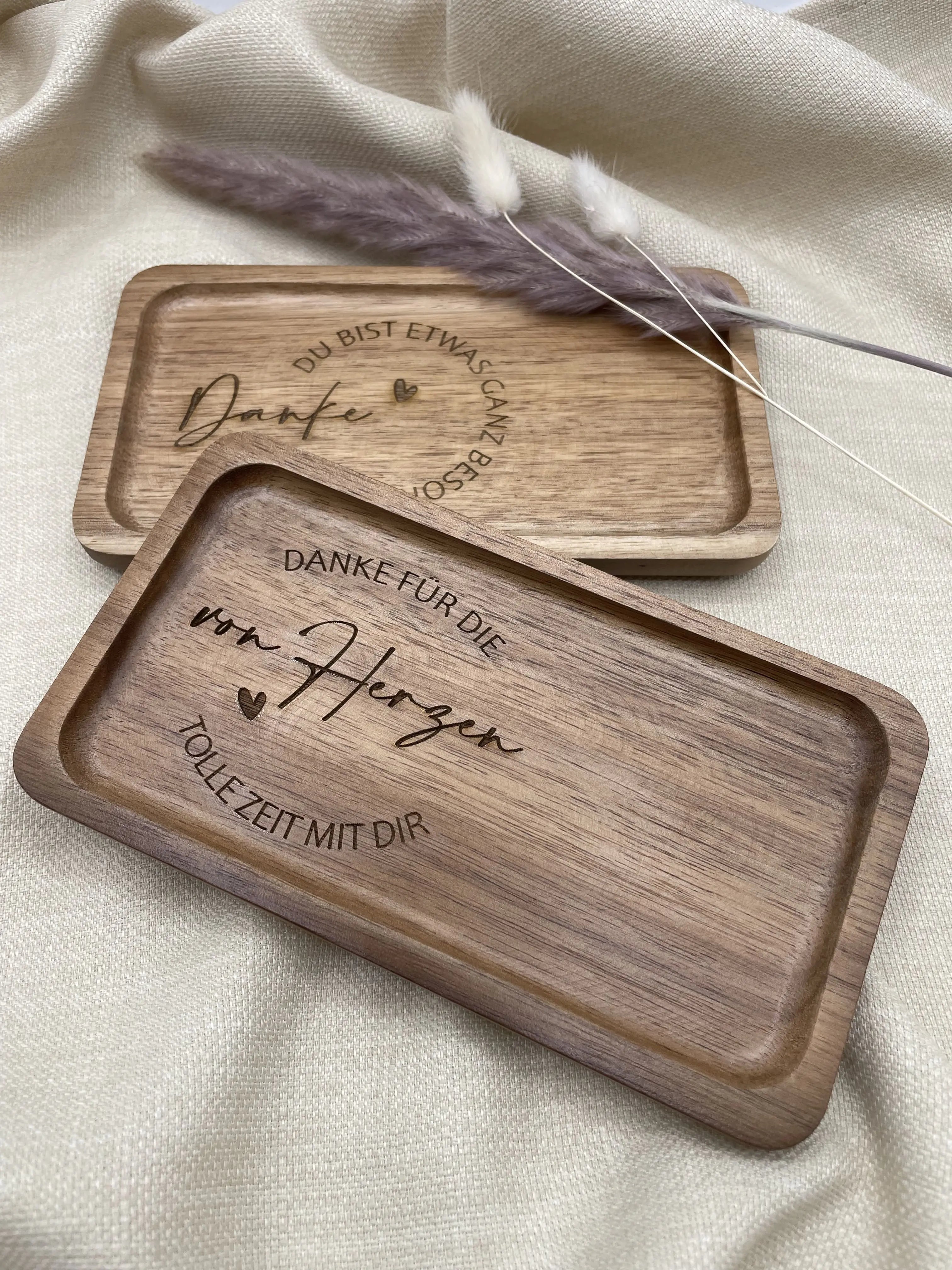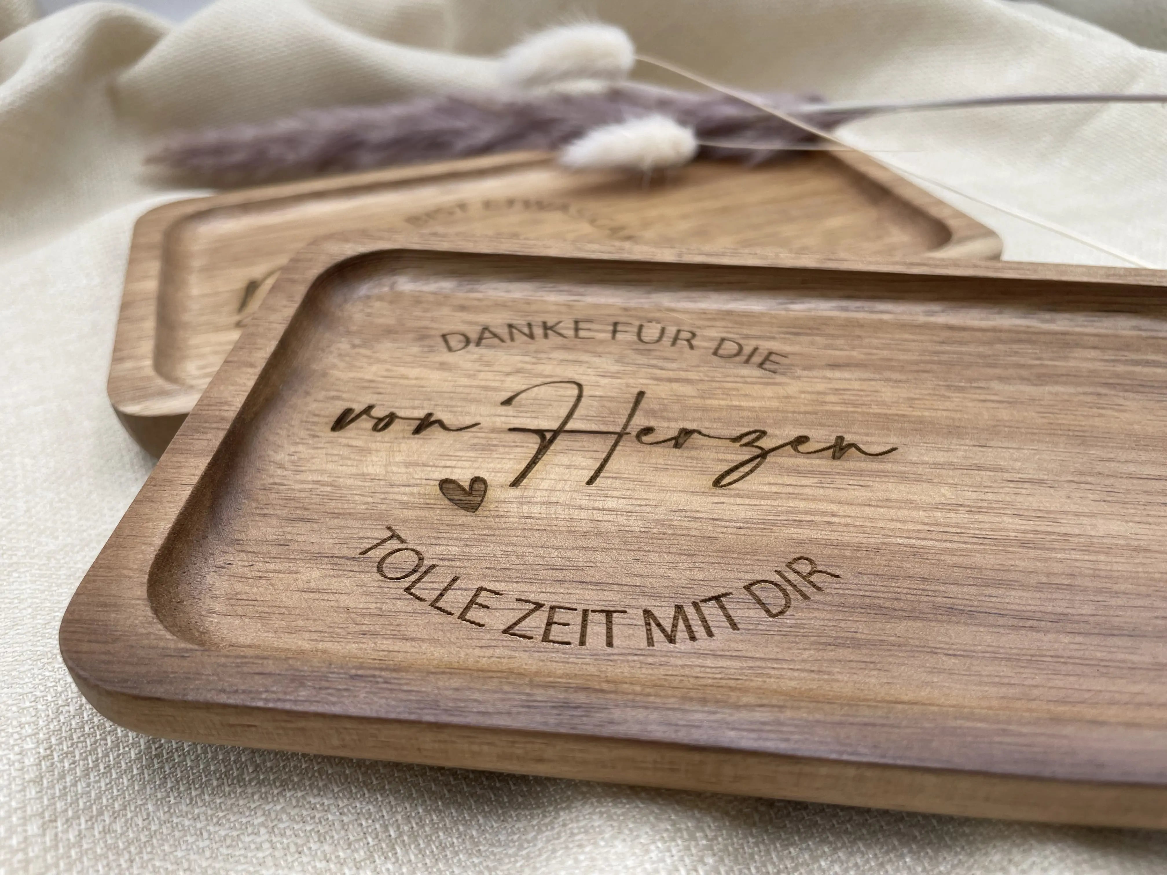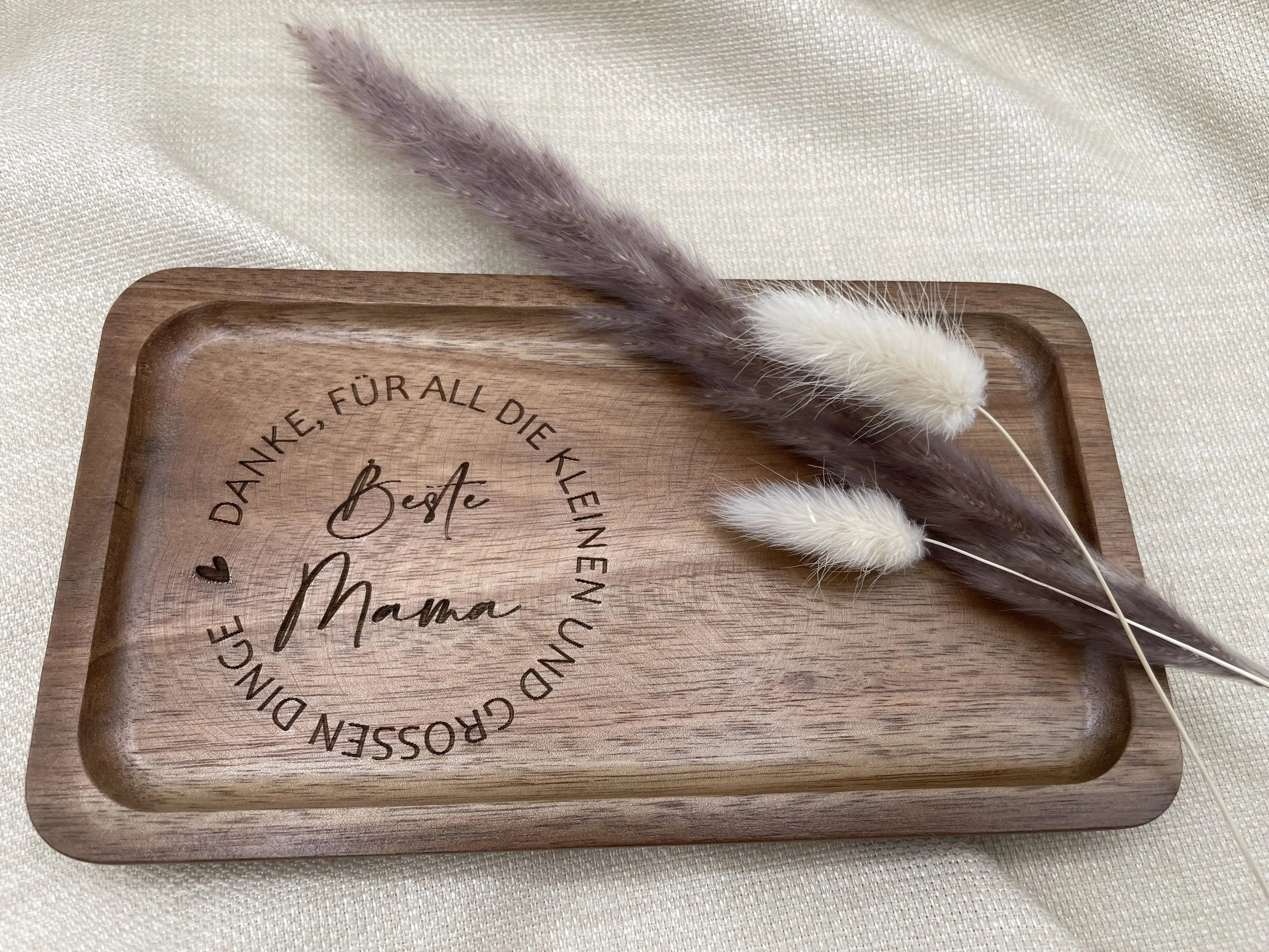 Auf Wunsch kannst du das Minitablett mit einem Namen personalisieren und es so zu einem ganz individuellen Geschenk machen. Perfekt als kleine Aufmerksamkeit zum Geburtstag, Muttertag, Vatertag oder einfach, um "Danke" zu sagen!