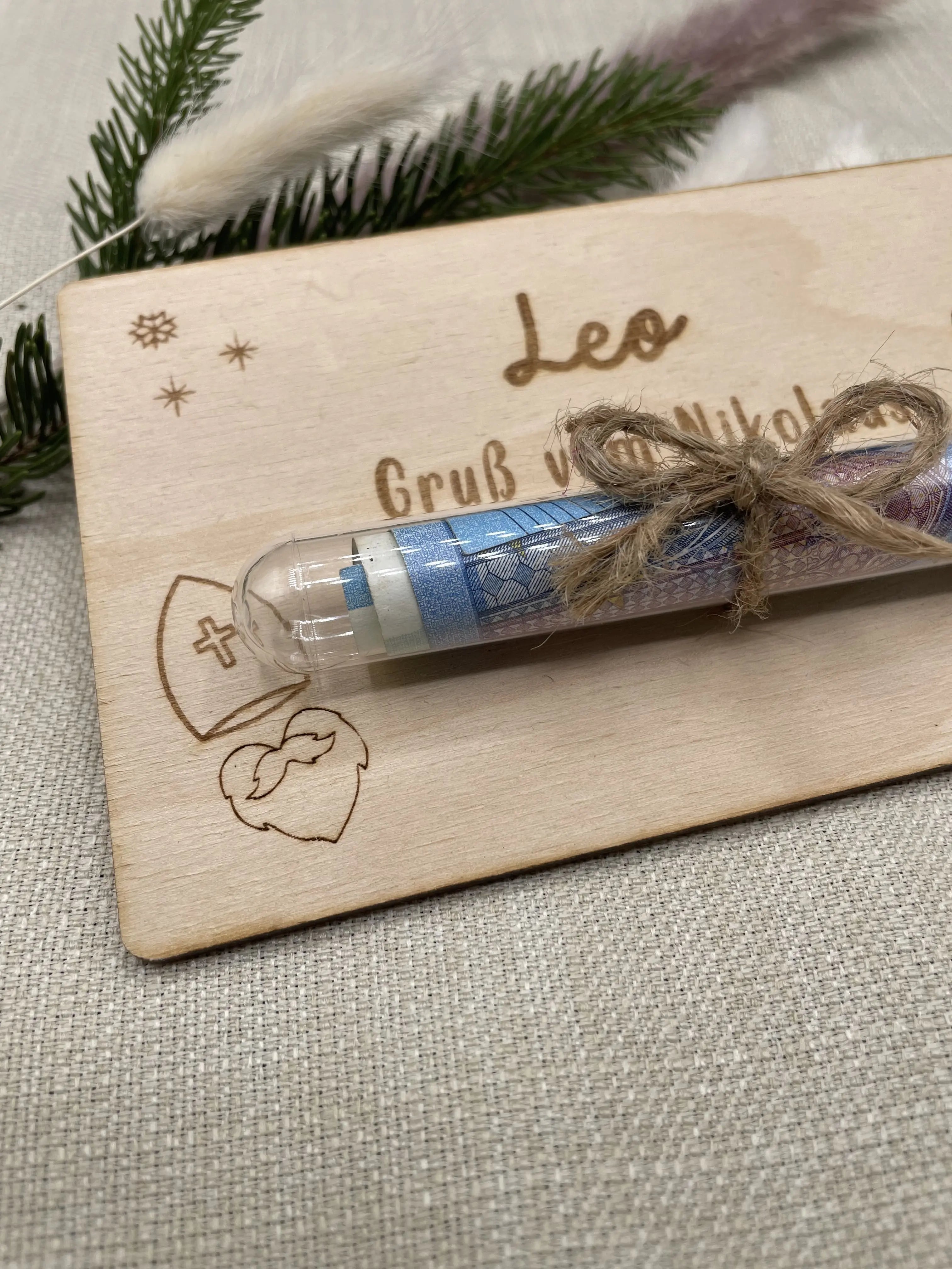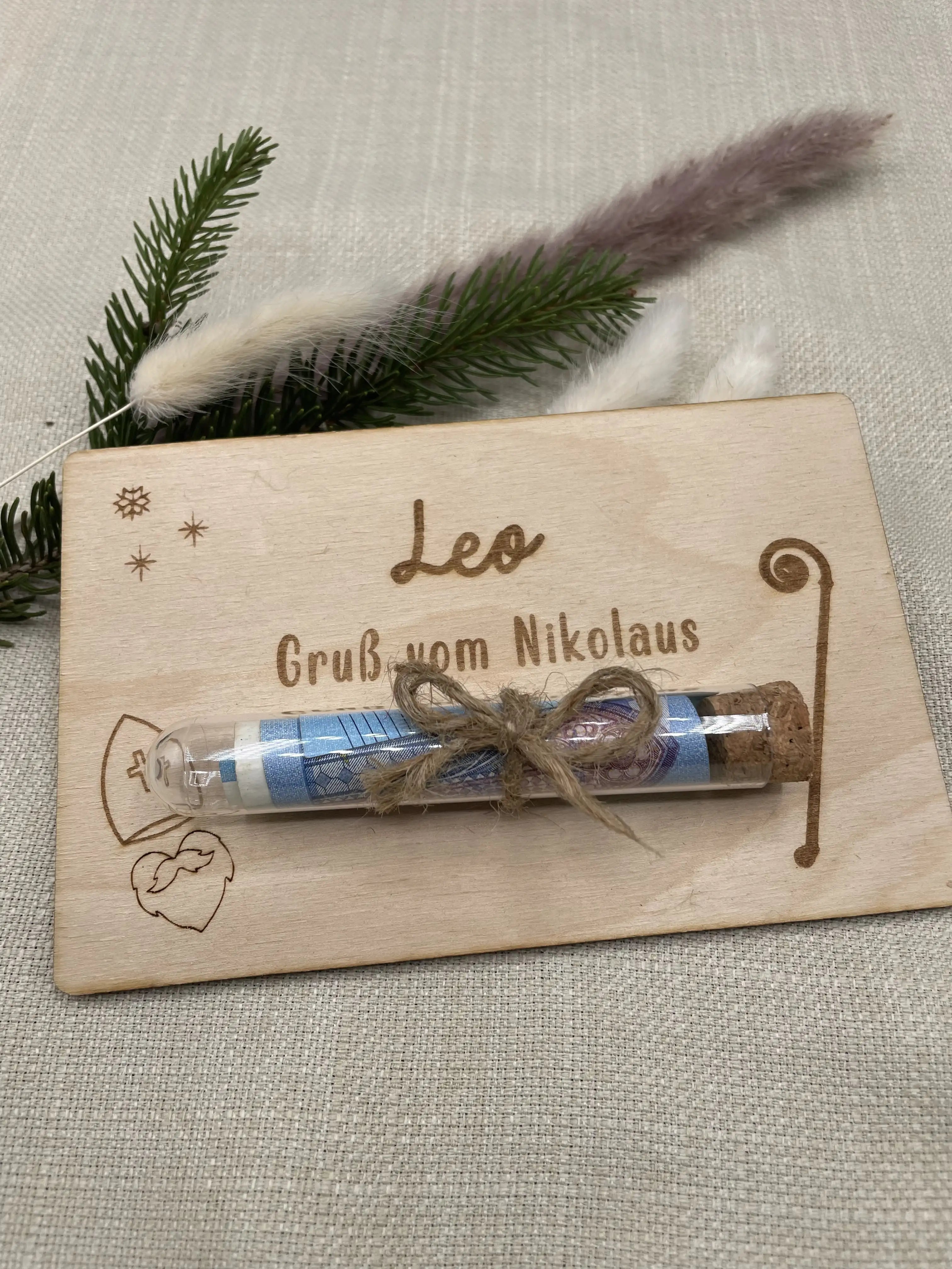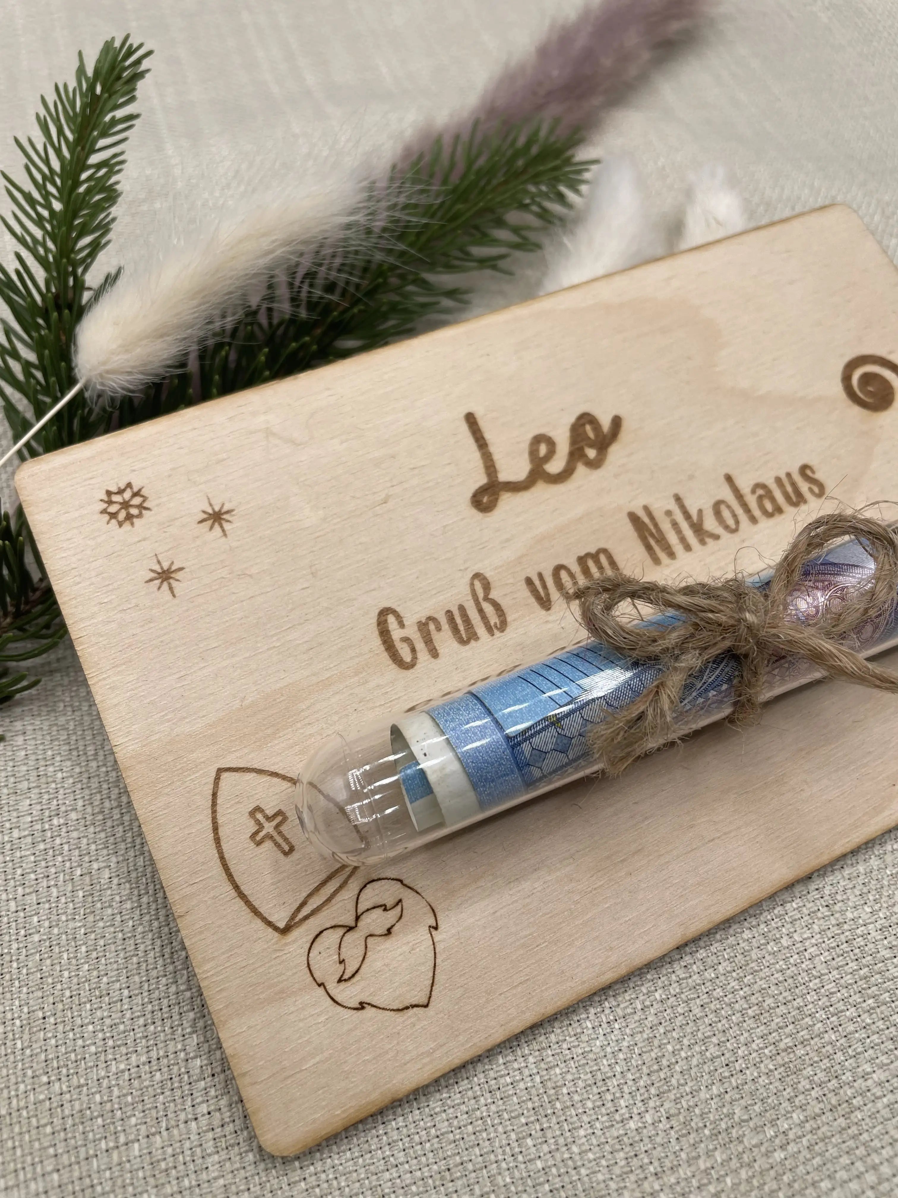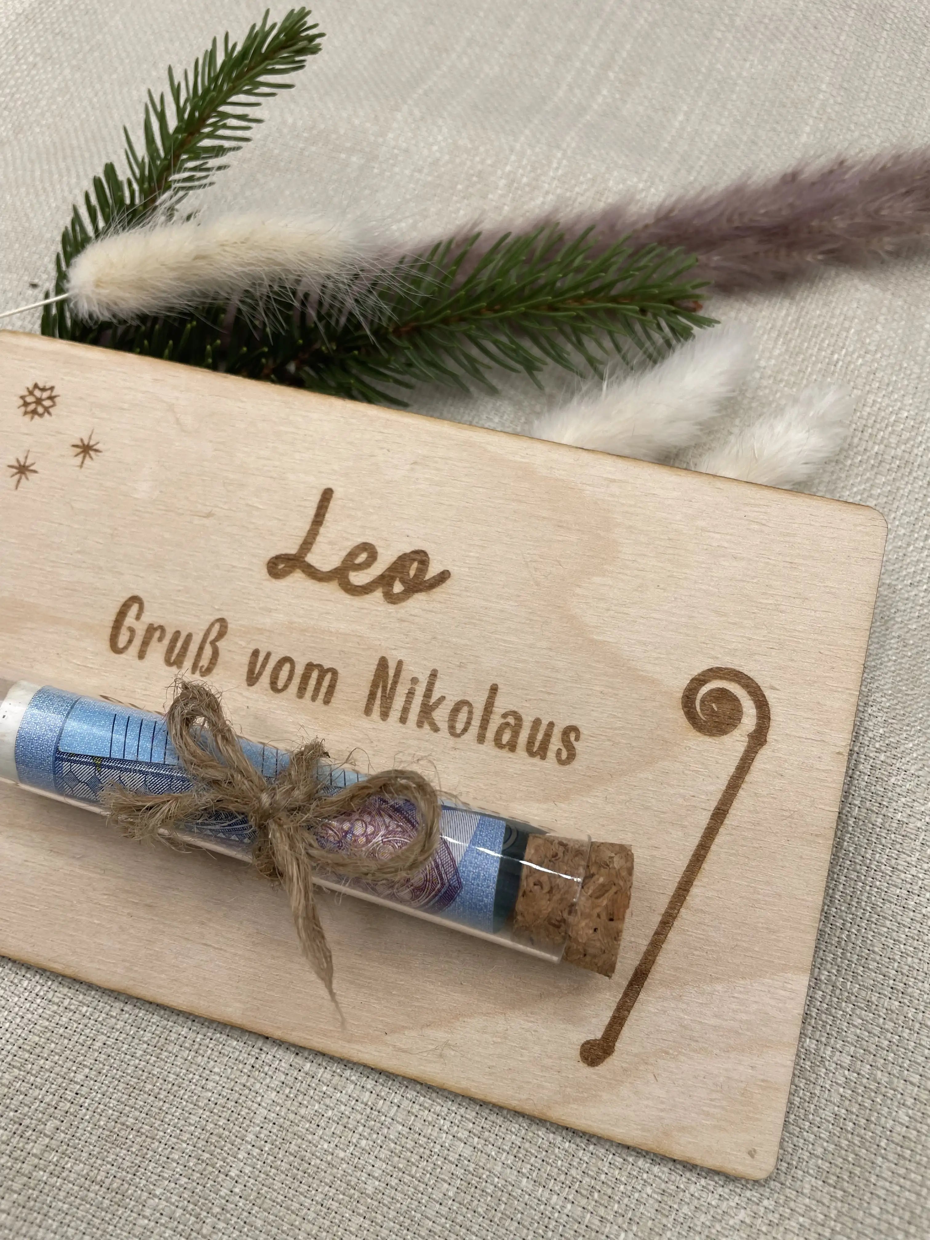 Überrasche deine Liebsten in der Adventszeit mit einem ganz besonderen Geschenk: Unsere einzigartigen "Gruß vom Nikolaus" und "Gruß vom Kramperl" Gutscheine bieten eine kreative Möglichkeit, Geldgeschenke stilvoll zu überreichen. Jeder Gutschein ist mit einem kleinen Röhrchen versehen, in dem du ein Geldgeschenk elegant einstecken kannst – perfekt für den Nikolaustag oder als besonderes Geschenk in der Adventszeit.